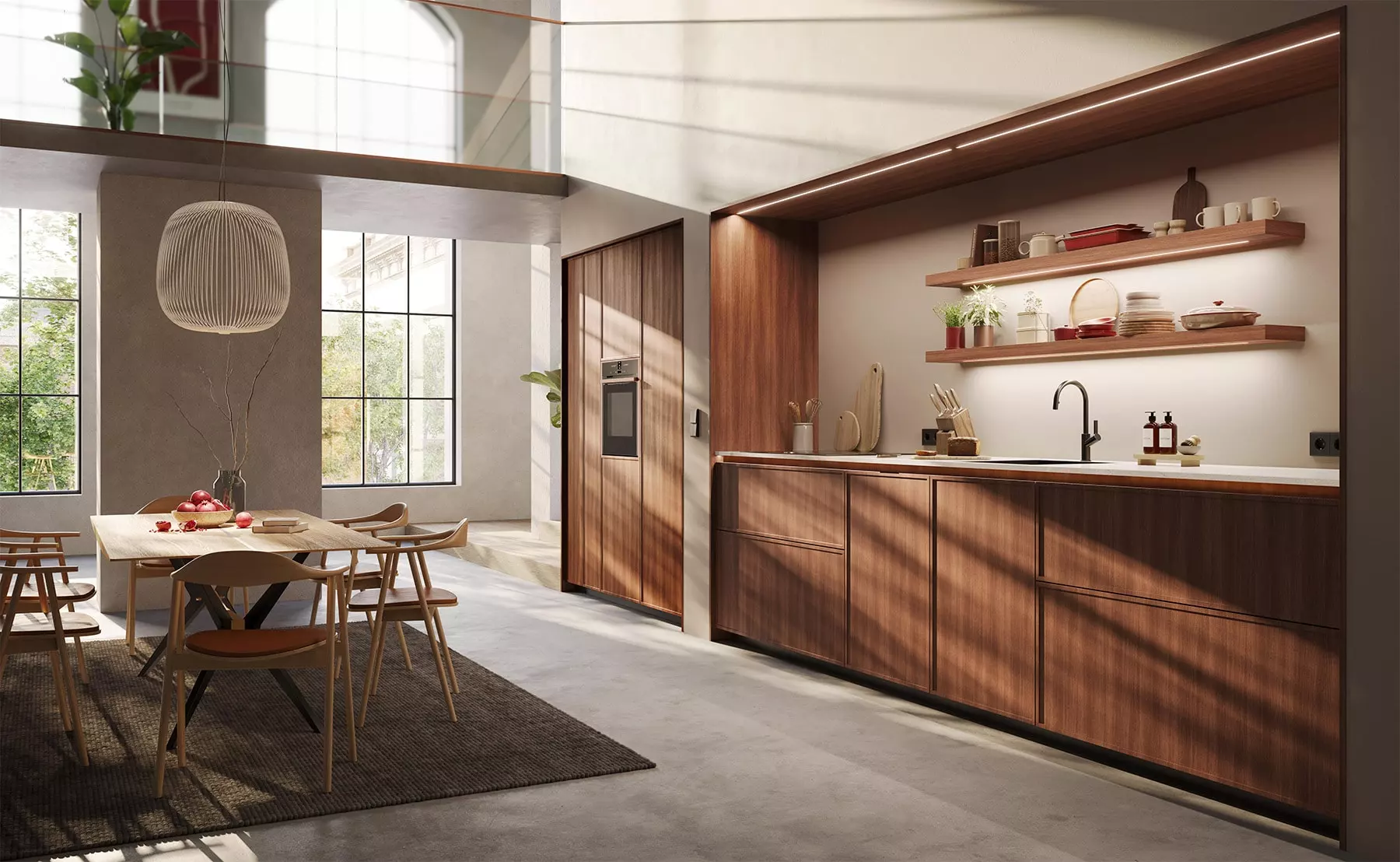 La cuisine Smala Walnut séduit par son esthétique raffinée et chaleureux. Conçue dans une implantation linéaire, elle optimise l’espace avec élégance, tout en offrant une fonctionnalité idéale pour les intérieurs modernes. Son format compact, rehaussé par des éléments ouverts et une intégration sur mesure, fait d’elle une solution parfaite pour les espaces de vie ouverts, urbains ou semi-lofts.